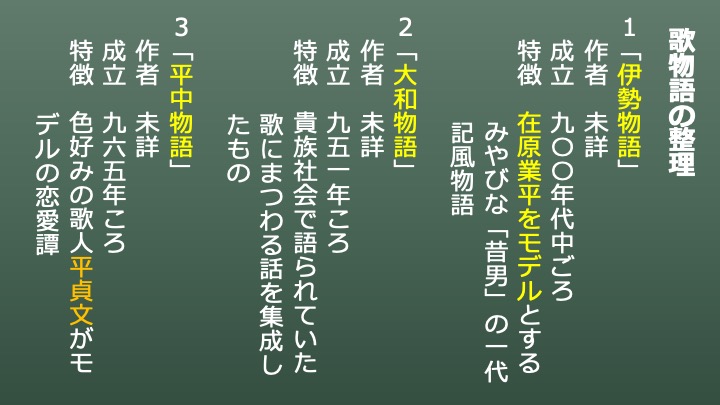 以下に「歌物語」のまとめをしておきますので、確認してみてください。