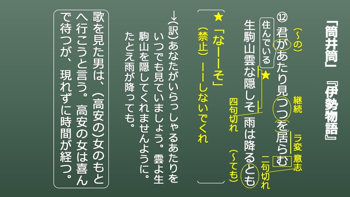 今回は、「筒井筒」の後半部についてお話しました。一通り学習を終えたら、今度はテスト対策編もご覧ください。