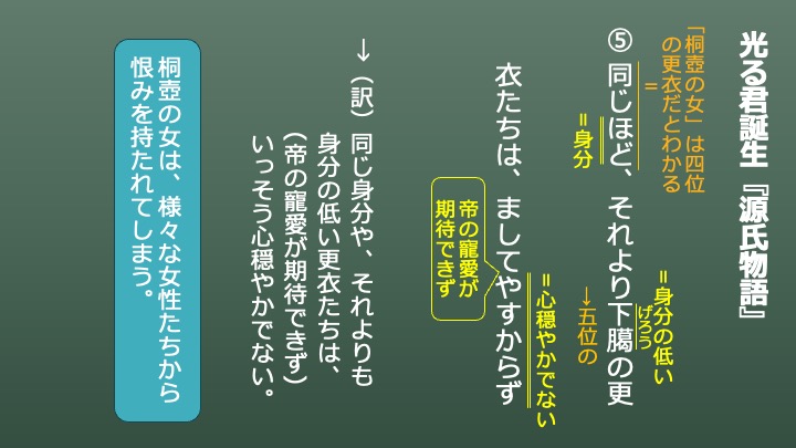 ⑤同じほど、それより下﨟の更衣たちは、まして安からず