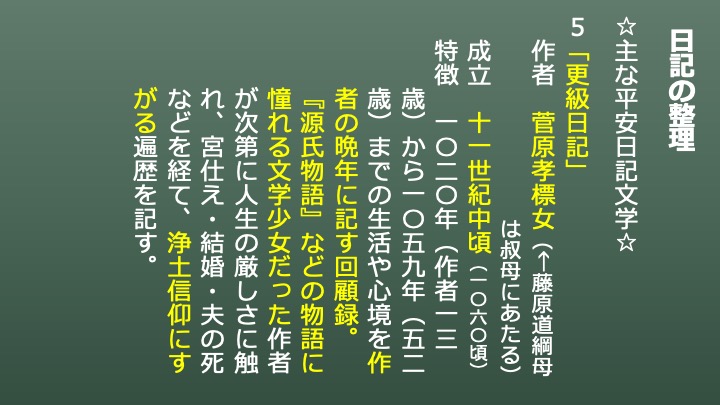 今回は『更級日記』です。教科書では「源氏の五十余巻」や「物語」という題名で載せています。『更級日記』については「東路の道の果て」で詳しく説明していますので、そちらをご覧ください。